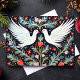 Mit dieser wunderschön gestalteten Karte mit zwei eleganten Tauben, umgeben von faszinierenden Blumenmotiven im Stil der Volkskunst, können Sie in dieser Urlaubssaison Ruhe und Liebe genießen. Ideal für diejenigen, die traditionelle, aber künstlerische Urlaubsmuster schätzen, bringt diese Karte Wärme und Freude zu Ihren Weihnachtsgrüße.