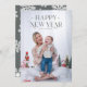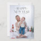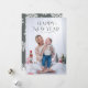 Fett Frohes Neues Jahr auf einem voll blutenden Foto. Einfaches und elegantes Design