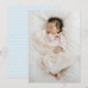 Stellen Sie Ihre Kleine mit dieser Fotokarte der Blutung vor. Dieses Design, das den Namen Ihres Babys in eleganter Kalligrafie trägt, schafft einen zeitlosen und raffinierten Sake. Personalisieren Sie es mit den Geburtsdetails Ihres Babys und teilen Sie Ihre freudigen Neuigkeiten mit Freunden und Familie auf die schönste Weise.