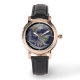 Uhr, Klassische Damenuhr mit schwarzen Lederarmband