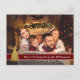 Ein modernes Foto Weihnachtskartendesign mit dem Foto Ihrer Familie, das das Kartengesicht ausfüllt. Metallischer goldener Weihnachtsbaum Akzent mit dunkelrotem Textband für Ihre Worte. Sie können die Backside Weihnachtsgrüße, Ihre Rücksendeadresse und Ihre Namen in Skript am unteren Rand mit Platz für Sie, um eine handgeschriebene persönliche Note hinzufügen personalisieren.