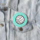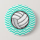 Volleyball; Aqua Green Zickzack Button