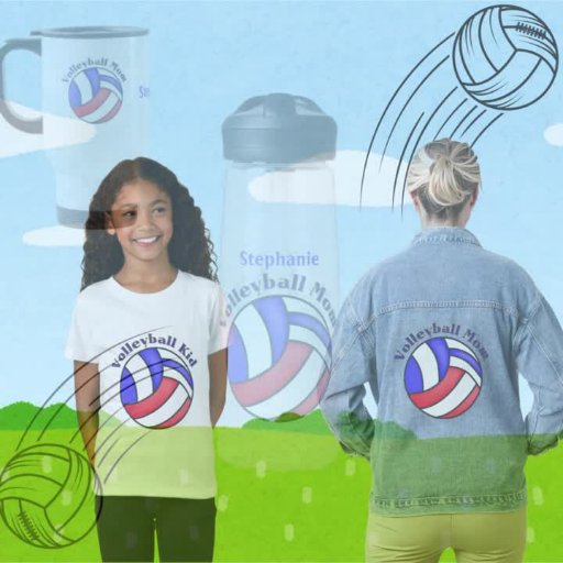 Volleyball-Mama rund um einen roten, weißen und blauen Volleyball. Der Name der Mama ist in der Mitte königsblau. Gutes Geschenk für den Muttertag.