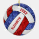 Der Weihnachtsschmuck in Rot, Weiß und Blau ist mit einem kaleidoskopischen Blumenmuster verziert, das mit den roten und blauen Volleyballpaneelen vermischt wird. Ein subtil künstlerisches abstraktes Drehmuster, das mit den weißen Tafeln vermischt wird - ihr Name und das Weihnachtsjahr sind individuell einstellbar - von katz_d_zynes | Weitere Weihnachtsschmuck zum Thema Sport >>> https://www.zazzle.com/collections/119728248363801463
