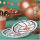 Volleyball in klassischem Weiß & Schwarz mit eigenem Orange Spieler NUMBER. Einfach zu personalisieren Text, Textfarbe. Spaß Party Teller für jede Feier, Team zusammenkommen, Sportfans. Mix und Spiel ganze Volleyball / Sport Kollektionen von TMCdesigns.