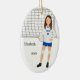 Volleyball Weibchen Brünett Blau & Weiß Keramik Ornament