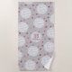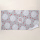 Dieses niedliche Strandtuch mit personalisiertem Volleyballmotiv weist ein einfaches Muster weißer Volleybälle auf, umgeben von winzigen rosa und roten Herzen auf hellgrauem Hintergrund - Spielername und Trikotnummer sind individuell einstellbar - von katz_d_zynes