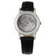 Uhr, Klassische Damenuhr mit schwarzen Lederarmband