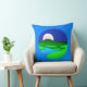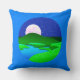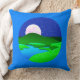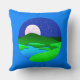 Kopfkissen in einer kreisförmigen Abbildung eines Vollmonds, der durch grüne Hügel am Ufer eines Sees aufsteigt, mit einem Sternenhimmel mitten in der Nacht