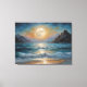 Vollmond über dem Ozean mit einem Berg Leinwanddruck