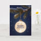 Ein strahlender Vollmond-Weihnachtsschmuck wird anmutig von einem schneebedeckten Kiefernzweig abgehängt, umgeben von einem funkelnden Sternenteppich am Nachthimmel für das Jahr 2025. Das Jahr ist bearbeitbar. Der Insider-Text kann geändert werden.