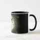 Weiß und Schwarz 11 oz. Combi-Tasse mit einem Lichtbild von Vollmond, einem Rabe, der auf einer Silhouette eines Baumzweiges steht, und Fledermäusen, die im Nachthimmel fliegen. Siehe passende Süßkarre. Sehen Sie die gesamte Halloween-Tasse-Kollektion unter der Kategorie ZUHAUSE in der HOLIDAYS-Sektion.