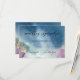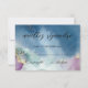 Elegante himmlische Hochzeitskarte mit allen Textsegmenten anpassbar. Text in französischer Sprache mit der Möglichkeit, sich bei Bedarf zu ändern. Die gleiche RSVP-Karte ist auch in Englisch verfügbar. Design mit einem exquisiten Aquarell-Hintergrund mit Aquarellfärbungen in einer künstlerischen Mischung aus lila, magenta, fuchsia, aquamarin, türkis, aqua, blau und marineblau Farbtönen mit Goldelementen. Teil unserer Kollektion "Mystic Garden" mit einer Vielzahl von Produkten zur Koordination.