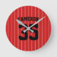 Baseball Stripes Stil Uhr mit Farben, die vollständig anpassbar sind. Klicken Sie auf die Hintergrundfarbe anpassen und ändern. Um die Farbe der Streifen zu ändern, klicken Sie auf Anpassen, wählen Sie die Ebene ThinStripes1 aus, und ändern Sie die Farbe der Füllung. Perfektes Geschenk für den Baseballfan. Personalisieren Sie es, indem Sie den Platzhalter-Text ersetzen. Für weitere Optionen, wie zum Beispiel den Schriftart zu ändern und seine Größe/Farbe, den Abstand zwischen den Buchstaben oder um gekrümmten Text zu erweitern oder zu verändern, klicken Sie auf die Schaltfläche "Anpassen". *Bitte beachten Sie, dass das Zazzle-Wasserzeichen, das in der Zoomvorschau angezeigt wird, NICHT auf dem gedruckten Endprodukt erscheint. © Rosewood and Citrus