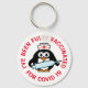 Vollständig gegen coviden Coronavirus-Schlüsselanhänger geimpft. Individuelle Round-Button-Schlüsselkette für Impfschutz. Niedlicher Cartoon Pinguin mit großem Spritzenschuss. Fügen Sie optional Ihren eigenen Impfstoff-Pandemietext hinzu.