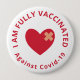 Vollständig geimpfter Knopf mit Vollimpfung gegen covid-19 ist in gebogenem Text in rot auf weiß um ein rotes Herz mit Gips geschrieben.