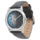 Vollständige Erde mit simulierten Wolken über der Armbanduhr