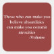 "Diejenigen, die dich glauben machen können, dass Absurditäten dich dazu bringen können, Gräueltaten zu begehen", warnte Voltaire im 18. Jahrhundert. Diese beunruhigende Weisheit war und wird immer wahr sein.