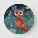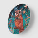 Vom Künstler handillustrierte Eule – Boho Natur Runde Wanduhr