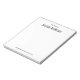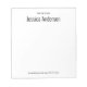 Vom Schreibtisch der Formulare die oberste Zeile des Anzeigetextes auf diesem Notizblock. Die zweite Textzeile ist für den Namen des Empfängers größer. Es gibt unten einen kleinen schwarzen Text für Kontaktinformationen wie eine E-Mail-Adresse und Telefonnummer.