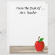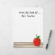 Dieses Briefpapier aus dem Schreibtisch von... mit jedem Namen einfach personalisieren. Oder einfach den Text ganz durch Löschen verlassen. Ein roter Apfel mit grüner Blattanzeige auf einem Holzschreibtisch befindet sich in der unteren Ecke. Viel Platz zum Schreiben später. Eine tolle Geschenkidee für Lehrer, Ärzte, Krankenschwestern, Gesundheitsfachleute, etc. Denken Sie daran: "Ein Apfel am Tag, behalte den Arzt weg!"