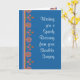 Eine hübsche Get Well Card für jemanden mit Shoulder-Operation, mit einem Randmuster aus Orange, Rosa und Blauen Blumen und einem Rangoli-Motiv aus einer handbemalten Papiercollage von Judy Adamson. Teil der Posh & Painterly 'Rangoli' Kollektion.
