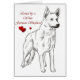 Liebliche Linienkunst zeichnend von einem Weißen Deutschen Schäferhund mit roten Herzen und dem Text "Loved by a White German Shepherd". Tolle Geschenkideen.