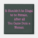 In einem rosa Text steht: "Es sollte nicht illegal sein, weiblich zu sein, denn alles, was du von einer Frau kommst."