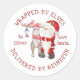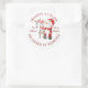 Personalisierte Weihnachtsaufkleber für Kindergeschenke vom Weihnachtsmann. Die Etiketten sind mit "verpackt von Elfen, geliefert von Rentieren", in skurrile Typografie, die Sie bearbeiten können, wenn Sie möchten. In der niedlichen Aquarellbilder befindet sich der Weihnachtsmann mit Rentier und Kardinal.