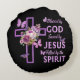 Von Gott Gerettet, gesegnet von Jesus Lila Blumenk Rundes Kissen