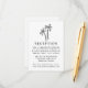 Mit dieser eleganten Umzäunungskarte aus Empfang mit handgezeichnet schwarzen Palmen auf weißem Hintergrund können Sie Ihre Gäste bewundern. Dieses minimalistische Design eignet sich perfekt für tropische, küstennahe oder Hochzeiten in Urlaubsort und bietet Platz für die Einzelheiten der Hochzeitsfeier, einschließlich Veranstaltungsort, Uhrzeit und zusätzliche Informationen. Eine schicke und praktische Ergänzung zu Ihrer Hochzeitssuite.
