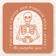 Der Begriff "befeuert durch Kaffee und Kürbisgewürz" verspricht ein lustiges, herbstliches Ambiente, oft mit Skeletten, die Kaffee und den beliebten Kürbisgewürz-Geschmack genießen.