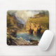 Steile Schlucht zwischen zwei Bergen. Schlösser und Gebäude am Berghang. Vintager Kunstmaler unbekannt.