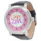 Uhr, Klassische Damenuhr mit schwarzen Lederarmband