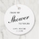 Klassisches Brautparty-Gunst-Tag mit einem einfachen Design mit "From My Shower To Yours" in einer eleganten schwarzen Kalligrafie, zusammen mit Ihrem Namen und Veranstaltungsdatum, auf einem weißen Hintergrund. Die Rückseite ist schwarz. Diese niedlichen und modernen Gvor-Tags mit klassischer Typografie sind eine gute Möglichkeit, um Ihren Brautparty-Favoriten eine persönliche Touch hinzuzufügen.