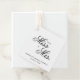 Elegantes typografisches Brautparty bevorzugt Tags mit einem einfachen Design mit der Meldung "Von Miss zu Mrs." in schwarzer Kalligrafie und Serif-Schriftart und Ihrem Namen, Datum der Veranstaltung unten, auf weißem Hintergrund. Die Schriftart und Hintergrundfarben können beliebig verändert werden. Diese extravaganten und klassischen Tags sind ideal für eine schicke Braut und fügen Ihren Lieblingen eine persönliche Touch hinzu.