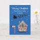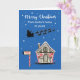 Während Santa seinen jährlichen magischen Flug nimmt, senden Sie fröhliche Wünsche von seinem Haus zu Ihrem. Das Haus des Weihnachtsmannes wird gesehen, und der Schlitten und die Rentiere starten im Nachthimmel. Spaß Karte zu schicken Weihnachten!