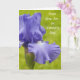 Eine hübsche Muttertagskarte für Mama von ihrem Sohn, die das Foto einer hübschen, lila Iris-Blume vor einem hellen, grünen Hintergrund zeigt. Wählen Sie aus einer matten oder glänzenden Stilkarte.