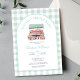 Feiern Sie die Mama-to-be mit unserer niedlichen Einladung zum Thema "Lokal gepflegt". Das Design besticht durch einen niedlichen Aquarellbauernmarkt auf grünem Gingham-Hintergrund. Stilvoll und charmant. Verwenden Sie die Entwurfstools, um den Text anzupassen. Auch als digitaler Download verfügbar.