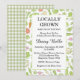 Feiern Sie Ihr kleines Spross mit dieser charmanten Bauer-Markt-inspiriert Baby-Dusche-Einladung! Mit charmanten Veggie-Illustrationen, einem klassischen Gingham-Hintergrund und Bauer-Markt-Flair, Set der perfekte Ton für eine süße, hausgemachte Ansammlung. Diese Einladung enthält rustikale Touchs, sie ist der perfekte Weg, um eine süße Feier anzukündigen, die in Liebe und hausgemachte Freude wurzelt. Ideal für Party im Garten, Bio Themen oder eine Babydusche mit frischem Flair vom Bauernhof zum Tisch. Diese Einladungen sind Teil einer Babydusche-Kollektion mit den zur Verfügung stehenden Koordinaten.