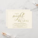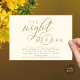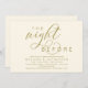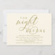 Planen Sie ein hochmodernes Hochzeitsfest mit der Braut und der künftigen Probe vor ihrem großen Tag? Mit dieser "The night before" laden wir Sie ein, die perfekte moderne romantische Hochzeitsfeier mit Probe Dinner in ästhetischer Gelbgold Einladungskarte zu genießen.
