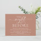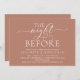 Moderne Romantische Kalligraphie, Weißschrift, Terracotta Brown Earthy Tones Background, Einladungskarte für das Abendessen bei Hochzeit (mit Kartentitel: die Nacht vor). Es ist ideal für Ihre Hochzeit Probe Dinner feiern Party, bevor Sie Ihren besten Tag. Fügen Sie Ihre Daten in passender schwarzer Schriftart / Schrift hinzu. #TeeshaDerrick