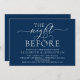 Moderne Romantische Kalligraphie, Weißes Drehbuch, Navy Blue Background, Einladungskarte für das Abendessen bei Hochzeiten (mit Kartentitel: Vornacht). Es ist ideal für Ihre Hochzeit Probe Dinner feiern Party, bevor Sie Ihren besten Tag. Fügen Sie Ihre Daten in passender schwarzer Schriftart / Schrift hinzu. #TeeshaDerrick