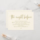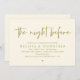 Mit unserem modernen, gelben Motiv-Design (The Night Before) Hochzeitsfeier Probe Einladungskarte verkünden Sie Ihre Freude, die Sie sich wünschen. Es ist ideal für Paare, die sich entschieden haben, die Nacht vor ihrem großen Tag zu feiern. Mit seinem ausgeklügelten und spielerischen Design wird diese Einladung den Ton für ein unvergessliches Ereignis Set. Die Einladungskarte bietet modernes romantisches Drehbuchdesign und verleiht Ihrem Fest eine Touch zeitloser Eleganz. Designed by TeeshaDerrick