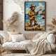 Dieses fantasievolle Kunstwerk zeigt einen Bären, einen wahren "Bären des Meeres", mit einem Feuerwehrhelm und einer Sonnenbrille, und spielt auf einem Felsvorsprung am Meeresrand eine akustische Gitarre. Abgestürzte Wellen und ein blauer Himmel mit verstreuten Wolken bilden den Hintergrund. Das lebendige, strukturierte Impasto schafft eine kraftvolle und skurrile Atmosphäre und macht diese "Liebe My Honey" Szene unvergesslich.