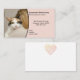 Dieses auffällige Visitenkartendesign zeichnet sich durch Ihr individuelles Foto aus und alle Details sind auf einem pastellfarbenen Pfirsichhintergrund auf der Vorderseite. Auf der Rückseite ist ein Herz aus Pfoten. Füllen Sie die Vorlagenfelder mit Ihren Informationen aus, entfernen Sie jeden beliebigen Text oder bearbeiten Sie ihn mit dem Entwurfstool, um einen Schriftart auszuwählen, den Sie bevorzugen. Ersetzen Sie das benutzerdefinierte Foto durch Ihr. Diese matte Unterschrift ist ideal zum Schreiben auf der Rückseite ohne Schmutz. Platzhalter Foto & Kunst mit freundlicher Genehmigung pixabay.com.