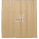Personalisiertes, weißes Monogramm auf einem Strohbrunnen-Duschvorhang mit einem Script-Schriftart über das Design auf einem bedruckten Imitat graue Leinen Foto Effekt Hintergrund. Neutrale Farben, die mit muscheligen Farben oder anderen neutralen Farben übereinstimmen und kontrastieren.