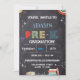 Vorschule Kindergarten Klasse Chalkboard Grad Invitation mit lustigen Grafiken oder Designs, die für kleine Kinder geeignet sind dekoriert. Zu den gemeinsamen Themen zählen farbenfrohe