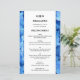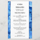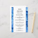 Blauer Blumenrand Hochzeitsmenü Vorlage. Drei Buchstaben Monogramm oben mit schwarzem Text für die Menüliste.