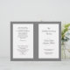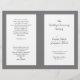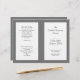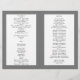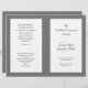 Dunkelgraue und weiße Hochzeitsfeierprogramme mit Textvorlagenbereichen für eine längere, katholische Zeremonie. Der schwarz-elegante Schriftart wird auf weißen Tafeln auf der Vorder- und Rückseite aufgedruckt. Falten Sie nach dem Empfang in der Mitte zusammen, um die Schrift und Danksagung auf die Rückseite des Programms zu setzen. Auf der anderen Seite (die die zentralen Seiten des Programms sein wird) die Reihenfolge der Zeremonie und die Hochzeitsfeier Sektion, um alle Personen, die daran beteiligt sind, den Tag so besonders zu machen. Obwohl dieses Sample-Programm ist Set für einen katholischen Dienst, verwenden Sie es für jede Art von Hochzeit. Fügen Sie Leerzeichen hinzu, damit die Formulierung besser passt.